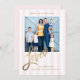 Pink watercolor stripes with a pretty pop of faux gold foil. Simple & sweet but highlights your family picture beautifully!