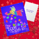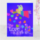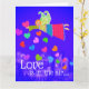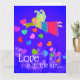 Love is in the Air is the message on this Valentine postcard. A naif folk art Angel flies over the town with her feathery wings. She is surrounded by bright colorful hearts fluttering in the sky. All text on the front and back can be customized with your own special message! This design is suitable for anyone from kids to adults.