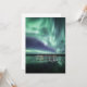 Fotografía de un astro de las auroras boreales (Aurora borealis) reflejando en un fiordo en la costa norte de Noruega, Escandinavia.