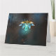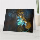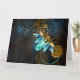 luciérnagas de vapor con alas transparentes azules y bombilla verde sobre fondo gastado, marrón y texturado. Estilo Steampunk.