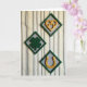 This design shows three diamond-shaped frames in deep forest green, set on a muted gray mat and arranged in a staggered diagonal across softly wavy vertical stripes. The background bands shift through muted cream, pale yellow, soft sage, and charcoal, giving the scene a cozy, textured look. At the top, two nested golden hearts overlap with a gentle metallic shine, like a quiet closeness between two people. Nearby, a green shamrock sits neatly within its frame, adding a classic St. Patrick’s Day touch ☘️. In the lower right, a golden horseshoe curves upward, its bright edge catching the light as if it’s guarding a little shared luck 💚. There’s no headline text, so the symbols and spacing do the talking, with the shapes centered inside each frame and plenty of open space around them. Soft, even lighting creates small shadows along the frame edges, and the uneven stripe lines drift vertically behind the trio.