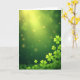 Designed with a dreamy forest feel, the scene glows in layered greens with a warm golden light spilling in from the upper left. Along the right and bottom edges, a cluster of shamrocks (some like four-leaf clovers) curls upward, their leaflets gently opening as if reaching toward one another in a quiet, affectionate way 💚. The foreground leaves are sharply detailed, while the background fades into soft, shadowy foliage that makes the clovers feel close and intimate. A gentle gradient shifts from honey-gold near the top left into deep emerald across the rest of the card, giving the setting a calm, early-morning look. Scattered throughout the middle and back are small glowing orbs, like fireflies or dewdrops catching light, adding a soft sparkle ☘️. The greeting text sits near the upper left in light gold, with a smaller line beneath it in pale green to keep the focus on the glow. The shamrocks frame the lower corner with curved stems, bright highlights on their edges, and dim, leafy shapes receding into the background.