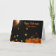 Gato negro en calabazas con luna llena y hojas de otoño en negro.