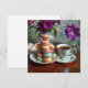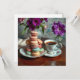 Tarjeta Macaron, Coffee and Vase of Purple Flowers