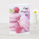 Tarjeta Macarons rosados y frambuesas rojas día de San Val