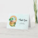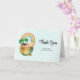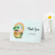 Tarjeta de agradecimiento con una adorable ilustración que presenta una maceta sonriente verde y dorada con un arcoíris lindo,