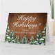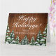 Feliz feriado doblado tarjeta de saludo. Madera rústica marrón, fondo de nieve y bosque nevado. Acogedor estilo rústico vintage. Hay más artículos disponibles en este estilo en nuestra tienda. Puede editar el diseño más adelante, cambiar colores, fuentes y añadir texto extra haciendo clic en el enlace "personalizar más adelante".