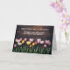 Madrastra o Madrastra, como usted quiera que se lea, también puede cambiar la redacción, la fuente y el color de la cubierta. Bonita tarjeta de Feliz Día de la Madre con bulbos de primavera y fondo de madera rústica.