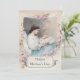 Ilustración vintage renderizada con sensibilidad en tonos de azul suave, gris y lavanda con una joven madre de la era victoriana acunando a su hijo recién nacido enmarcado por lilas sobre un fondo de acuarela sutil. Estandarte en blanco con campos de texto personalizables. Imagen complementaria en el reverso con campos de texto personalizables.