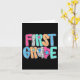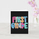 Tarjeta Maestra de primer grado alumno feliz primer día de
