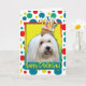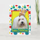 Celebre un cumpleaños con esta tarjeta de felicitación caprichosa de Tulear Dog del algodón. ¡Con una magdalena equilibrada en ella es la cabeza, este diseño está seguro de traer una sonrisa y ríe nerviosamente! El BTW, este diseño tiene varias versiones, con diversos colores de fondo. Hay también una invitación a una versión del fiesta.