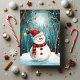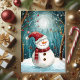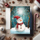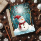Envía encantadores deseos navideños con esta encantadora tarjeta de Navidad que presenta a un adorable muñeco de nieve que lleva un sombrero rojo con lunares y una bufanda de cuadros caprichosos, parado en un bosque mágico iluminado por la luna. Delicados adornos cuelgan de ramas cubiertas de nieve mientras los copos de nieve flotan a través de la escena invernal soñadora en tonos azul verdoso y blanco. La ilustración de cuento captura la maravilla y la alegría de la temporada con su estilo suave y pictórico y detalles cautivadores. Perfecto para difundir sonrisas y magia de temporada. Mensaje interior totalmente personalizable.