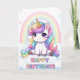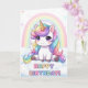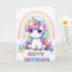 Haz su cumpleaños extra mágico con esta encantadora tarjeta de cumpleaños de unicornio que presenta un caprichoso unicornio bebé con una crin de arcoíris brillante y detalles pastel soñadores. Perfecta para hijas, sobrinas, nietas o cualquier niña que ame los unicornios, esta tarjeta de felicitación doblada añade encanto y asombro a su día especial. La parte frontal muestra un hermoso arte preestablecido de "Feliz Cumpleaños" en tonos suaves de arcoíris, mientras que el interior es totalmente personalizable para que puedas agregar tu propio mensaje sincero o deseos personales. Ideal para fiestas de cumpleaños con tema de unicornios, celebraciones pastel o como una dulce sorpresa independiente, esta tarjeta personalizada de alta calidad se convierte en un preciado recuerdo lleno de amor, alegría e imaginación.