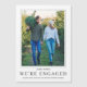 Comparte tu compromiso con tus amigos y familiares con este anuncio de compromiso. La plantilla de bricolaje es fácil de usar. Puedes subir fácilmente una foto de los dos, cambiar los nombres y agregar un mensaje personalizado. A la gente le encantará ver a los dos juntos. La parte trasera tiene un patrón de copo de nieve elegante que rodea una línea de texto.