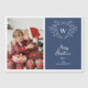 Los Navidades se alegran con esta elegante y moderna tarjeta magnética de saludo con un diseño de mistletoe de línea blanca enmarcando a un escudo clásico fácilmente personalizable con sus iniciales sobre un fondo azul clásico. Añade uno de tus retratos familiares favoritos a la izquierda de este imán por un único recuerdo