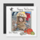 Cute Kid's Halloween Photo Magnet Card - Envíe sus saludos de Halloween con esta adorable y linda tarjeta de fotos para niños! Simplemente suba tu propia foto festiva (la plaza funciona mejor, pero se puede ajustar todo usando el editor) para una tarjeta de vacaciones personalizado que seguramente será un éxito entre familia y amigos! La tarjeta tiene una acuarela original de un porche de otoño bellamente decorado, lleno de lámparas de jack, decoración de otoño, calabazas, calabazas, cuervos, murciélagos y un adorable gatito dormido. Obra de Tiffany Duffy.