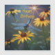 Esta tarjeta magnética de cumpleaños presenta una libélula azul descansando en una Susan de ojos negros.