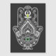 Proteger la mano de Hamza con el ojo verde - blanco sobre negro. Versión más corta. Bonita y aguda mano de Hamza pareciéndose a un tatuaje. Tarjeta magnética práctica con mano de Hamza.