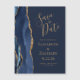 Esta elegante y moderna tarjeta de imán de fecha guarda un borde de agate color agua azul marino recortado con falso purpurina de oro. Personalizar fácilmente el texto de color oro sobre un fondo azul marino.