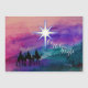 Hermosa escena acuarela con la silueta de los Tres Reyes que viajan al recién nacido Jesús. Tarjeta de Navidades religiosos que proclaman el nacimiento de Cristo.
