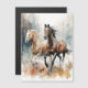 Tarjeta magnética de caballo salvaje occidental. Hermosos caballos tostados y marrones corriendo salvajes y libres en el desierto.