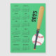 Tarjeta magnética del calendario de diseño de béisbol 2025 con color de fondo de personalizable.
