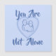 Que otros sepan que les importan estas palabras de consuelo y apoyo. Este es un regalo reflexivo para un amigo que pasa por tiempos difíciles o lucha contra la depresión, o un recordatorio para uno mismo de que hay gente que se preocupa. Este diseño incluye un dibujo azul de dos personas juntas en un corazón y el texto "No estás solo".