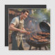 Esta divertida caricatura magnética de la tarjeta de cumpleaños incluye a un hombre al que le encanta cocinar en la parrilla.