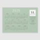 Tarjeta de calendario magnético de moda y moda 2025. Esta elegante plantilla de tarjeta de visita incluye el nombre de su empresa y el logotipo cuadrado, así como detalles de contacto y medios sociales opcionales. El texto viene en color negro azabache y el verde más claro, contra un fondo verde menta.