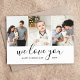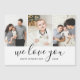 Un personalizado asequible imprimió imanes de tarjetas del Día del Padre personalizados con sus fotos y texto. Este moderno diseño minimalista presenta un collage de fotos con 3 fotos y texto de guión de moda que dice "Te amamos - Feliz Día del Padre Dada" o puedes personalizar con tu propio mensaje especial. Utilice las herramientas de diseño para cambiar el color de fondo, añadir más fotos, editar el texto y personalizar los tipos de letra y colores para crear sus propias tarjetas de felicitación únicas del Día del Padre para papá y abuelo.