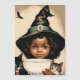 Vieja corbata de Halloween en gran gorra puntiagudo con dos gatitos. Gran tarjeta magnética para todo aquel que ame imágenes vintage, brujas, gatos. La versión No5 muestra a un niño afroamericano lindo. ___________ La imagen de estilo vintage fue generada por Canva AI y Alma Wad, la diseñadora humana .