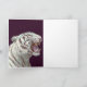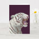 A striking illustration of a white tiger in full roar, set against a clean dark background. Ideal for unique, elegant greeting cards that impress.