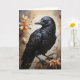 Tarjeta Majestuoso retrato de cuervo negro, flores, luna e