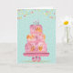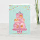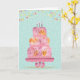 Set against a playful background of soft teal polka dots, colorful bunting flags, and falling confetti, this joyful design captures the fun and excitement of a birthday celebration. The whimsical cake sits on an elegant stand, making it the perfect centerpiece for this happy and festive greeting.