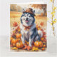 Tarjeta Malamute de Alaska en otoño deja arte de Acción de