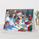 Tarjeta Malti Tzu corre en Nieve con Gorra Navidad