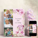 Di Feliz cumpleaños a mamá con una tarjeta de cumpleaños floral femenina, personalizada con 3 de tus fotos favoritas y un mensaje personalizado. Esta tarjeta fotográfica de bonito tiene flores acuáticas en tonos rosas y verdes sobre un fondo rosa claro con una simple tipografía de escritura. La plantilla está configurada para que agregue sus imágenes, que se muestran en formato cuadrado/instagrama en un collage de fotos sencillo de estilo de cuadrícula. El mensaje en la parte delantera es editable, si la tarjeta es para tu mamá, abuela o esposa, por ejemplo y también el mensaje en el interior.