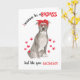 Feliz Día de la Madre Malota de tu perro StaffordshireTerrier Tarjeta de perro con amor y afecto. Tu perro StaffordshireTerrier quiere ser un malote como tú, su mamá perruna. Lleva una bandana de lunares rojos atada alrededor de la cabeza y gafas rojas características como las tuyas. Las huellas de sus patas rosadas y rojas tienen forma de corazón en uno de los dedos. En el interior hay una página izquierda de lunares rojos y un mensaje conmovedor en la izquierda. Eres tan admirada, eres vibrante, fuerte, paciente y asombrosa además de ser la mejor mamá perruna. Todo el texto es editable, solo usa la opción "personalizar". Recuerda cambiar el nombre del perro por el nombre de tu perro. Encontrarás más de 30 razas más como esta con bandanas y gafas rojas en nuestra colección "Tarjetas y regalos malotes de tu perro". También encontrarás una bandana roja, como la de la tarjeta que puedes personalizar ¡y tomarte una foto con tu perro StaffordshireTerrier! Verdaderamente la