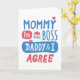 Tarjeta Mamá es la jefa, Papá y yo estamos de acuerdo