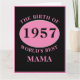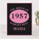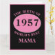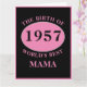 Maravillosa tarjeta de cumpleaños rosa y negra de cualquier año "Nacimiento de la mejor mamá del mundo". Agregue el año, inicial, nombre único mensaje, más otros detalles como se desee en los campos de plantilla creando una 40ª, 50ª, 60ª o cualquier tarjeta de celebración de cumpleaños.