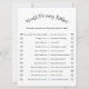 Añade diversión y risas a tu celebración con este juego de ducha infantil sería mami más bien minimalista. Con un diseño limpio y moderno, esta tarjeta imprimible es perfecta para mantener entretenidos a los huéspedes mientras celebran a la futura madre. Fácil de jugar y de diseño elegante, complementa cualquier tema de la ducha de bebé, desde clásico hasta contemporáneo. Este juego es una deliciosa adición que hace que tu evento sea memorable, y es imprescindible para crear momentos alegres con la familia y los amigos.