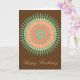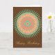 Una tarjeta de cumpleaños con un diseño mandala inspirado en la cultura india o marroquí. Este diseño presenta colores de melocotón/naranja, verde menta con un fondo personalizable. Sereno y tranquilo y lleno de energía tranquila zen.
