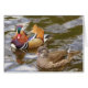 Tarjeta con foto de un par de patos mandarinos (Aix galericulata), nadando en el agua.