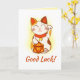 Tarjeta Maneki Neko con D20 dados RPG Buena Suerte