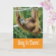 Mantén la Calma con una foto divertida de un orangután colgado de cuerdas. Envía un poco de humor con tu apoyo a alguien que está pasando por una enfermedad o un momento difícil. El texto interior dice "Pensando en Ti" pero se puede editar a cualquier mensaje que desees.