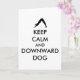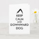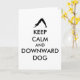 Tarjeta Mantén la calma y perro boca abajo
