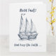 Un barco de vela dulce está en camino, con palabras de aliento: "¡Esperen rápido! ¡Y Mantengan la Fe!" Dentro de la tarjeta, una brújula va acompañada de las palabras: "¡Estás cerca de allí!". Una tarjeta perfecta cuando alguien que conoces necesita un poco de aliento en el camino.