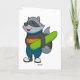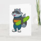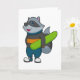 Tarjeta Mapache como Esquiador con Tabla de Nieve