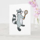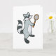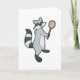 Tarjeta Mapache como jugador de tenis con raqueta de tenis