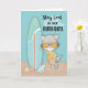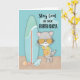 Una divertida tarjeta de cumpleaños de verano con un mapache genial que lleva gafas de sol. Lleva una camisa hawaiana y está apoyado en una tabla de surf en la playa de arena. Este juego de palabras añade diversión a la tarjeta de cumpleaños. ¡Perfecto para tu hijo de cualquier edad, o para cualquier persona que cumpla años en verano, joven o mayor!
